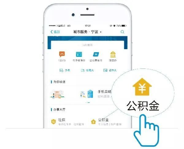 打开手机“支付宝”→点击“城市服务”→点击“公积金”→点击“公积金提取”