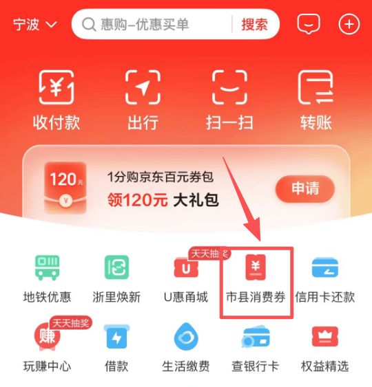 然后在县市区特色券区域,选择【鄞州区】,即可进入活动入口领券!